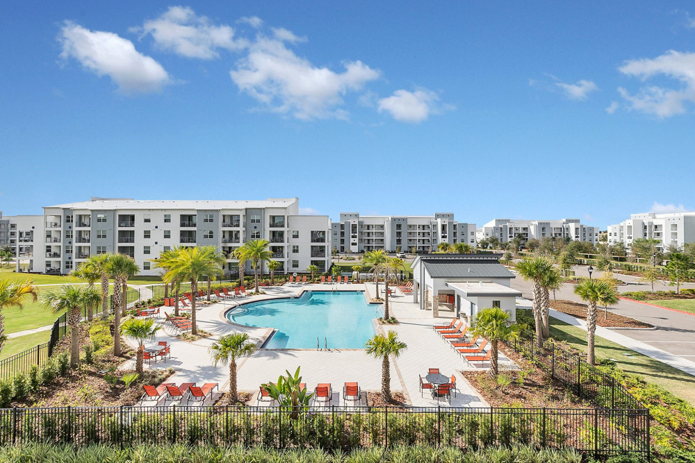 The community features top-tier amenities, including resort-style pools, a lazy river, water slides, clubhouse, fitness center, sports courts, and family-friendly attractions like mini-golf and splash areas.